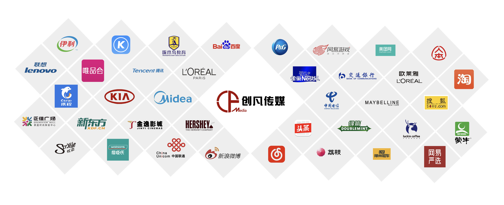公司以“做品牌年輕化的好幫手”為使命,憑借敏銳的創(chuàng)意洞察、卓越的營(yíng)銷策劃能力、豐富的活動(dòng)經(jīng)驗(yàn)和全方位的媒體資源,為企業(yè)提供高效、精準(zhǔn)的一站式營(yíng)銷推廣服務(wù)。已成為寶潔、騰訊、京東、中國(guó)聯(lián)通、字節(jié)跳動(dòng)等世界500強(qiáng)品牌庫內(nèi)供應(yīng)商。